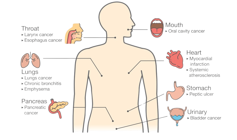 Smoking is one of the most harmful habits that directly affects your lungs, heart, and overall health. It increases the risk of lung cancer, heart disease, stroke, and chronic respiratory conditions like COPD (Chronic Obstructive Pulmonary Disease).